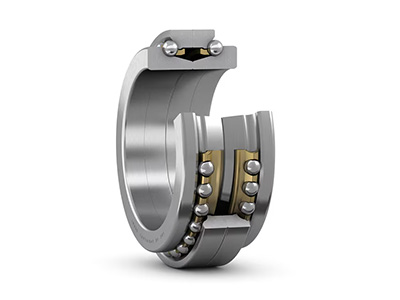 双向推力角接触球轴承设计用于主轴的双向轴向定位。这些轴承与NN 30 K或N 10 K系列的圆柱滚子轴承组合,安装于同一个轴承座孔中。这种轴承组合可以简化轴承座孔的加工。双向推力角接触球轴承的公称内径及外径与相应的圆柱滚子轴承一样。然而,座圈外径公差与超精密圆柱滚子轴承推荐的轴承座孔径及形位公差(标准条件下的轴承座公差)结合,使轴承座孔有一个适当的径向游隙。如果外圈没有轴向压紧在轴承座中,该游隙足以减少推力轴承承受径向载荷。